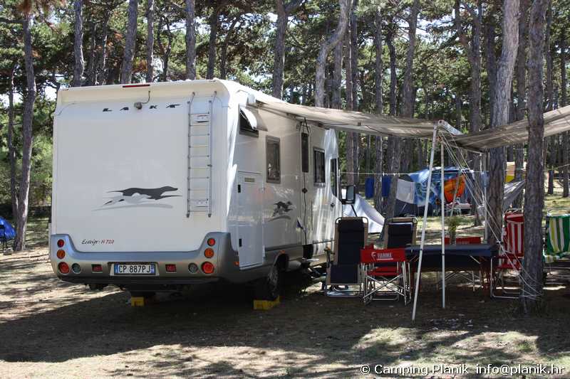 in einer Oase von unberührter Natur und der Stille von hundertjährigen TannenDas Campingplätze Planik befindet sich in dem Ort Razanac, einem typischen dalmatinischen Fischerort. Er befindet sich am Anfang des Ortes in einem dichten Tannenwalde mit einmaligen Baumkronen.